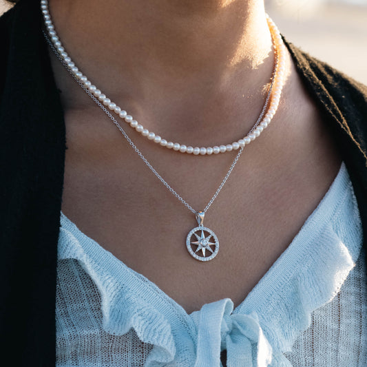 0.59 Ct Natural Diamond Compass Charm