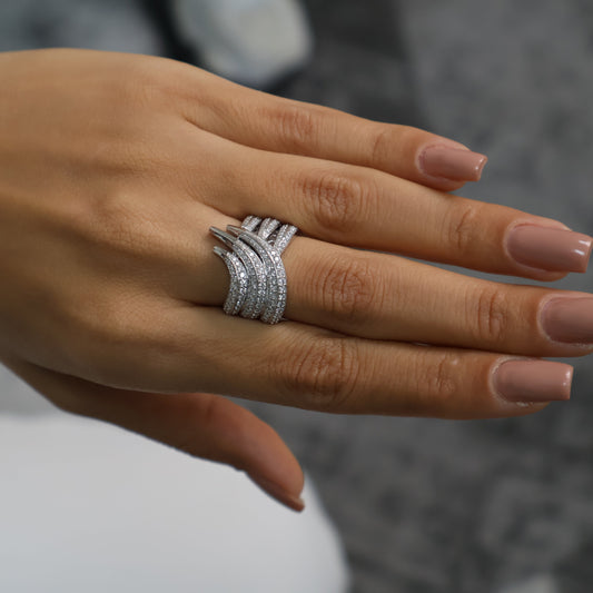 2.96 Ct Natural Multi-Band Pavé Diamond Ring